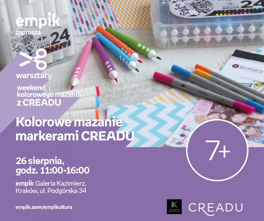 Proste narzdzia plastyczne: mazaki, pisaki i markery CREADU oraz kolorowe kreatywne warsztaty, ktre pomog odkry moliwoci drzemice nie tylko w narzdziach, ale przede wszystkim w Tobie! Przyjd koniecznie!