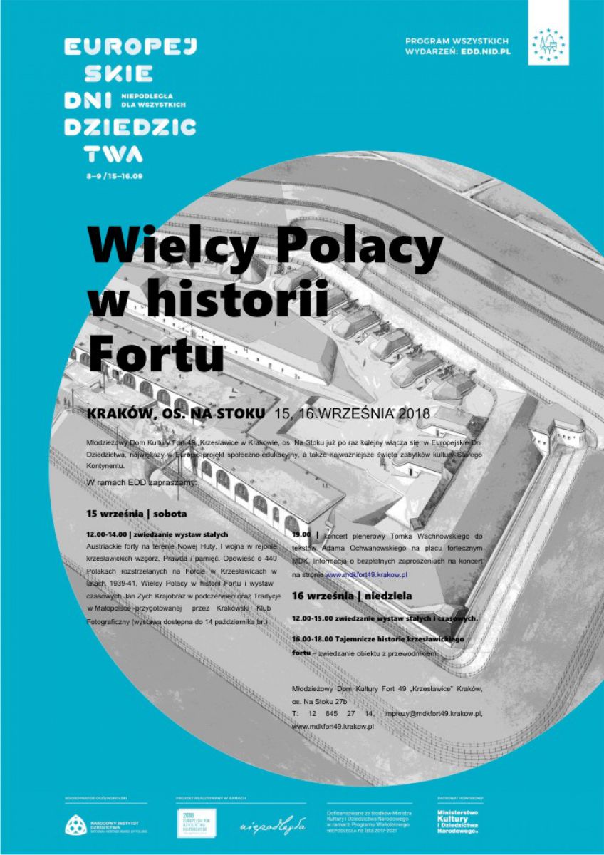 Młodzieżowy Dom Kultury Fort 49 „Krzesławice w Krakowie, os. Na Stoku już po raz kolejny włšcza się w Europejskie Dni Dziedzictwa, największy w Europie projekt społeczno-edukacyjny, a także najważniejsze œwięto zabytków kultury Starego Kontynentu.