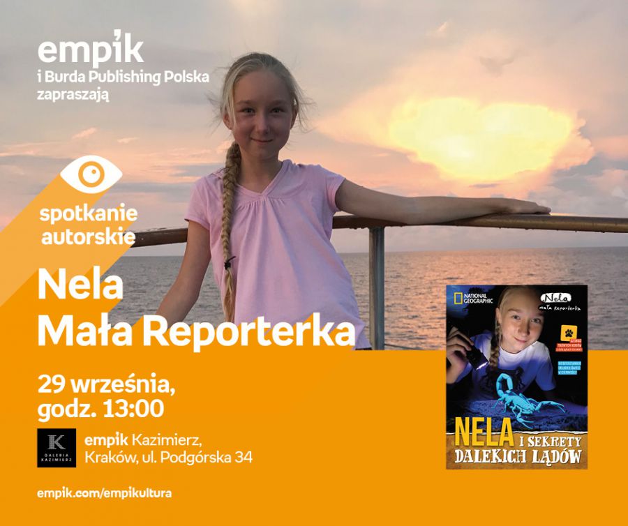 Jedna z najmłodszych podróżniczek na œwiecie wyrusza na kolejnš wyprawę pełnš przygód. Tym razem Nela zgłębia tajemnice Borneo – wyspy zamieszkanej przez endemiczne stworzenia, skarłowaciałe zwierzęta oraz potomków łowców głów. Swoje odkrycia z wyprawy opisuje na kartach ksišżki „Nela i sekrety dalekich lšdów” (Burda Publishing Polska). Dowiemy się z niej m.in. o tym, jak naprawdę wyglšdajš niebezpieczni „leœni ludzie” widziani tam setki lat temu, poszukamy przedziwnych małp nazywanych nosaczami a także wybierzemy się w nocy na eksplorację dżungli, w zupełnie innym œwietle niż œwiatło księżyca. O swoich niesłychanych przygodach Nela Mała Reporterka opowie nam także podczas spotkania, a na zakończenie uczestnicy będš mogli zdobyć pamištkowy autograf, pieczštkę oraz zdjęcie. Zapraszamy!