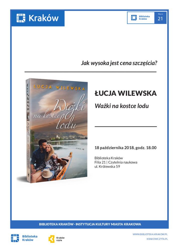 Serdecznie zapraszamy na spotkanie autorskie z Łucjš Wilewskš autorkš powieci obyczajowej Ważki na kostce lodu, a także dwutomowego cyklu z gatunku romansu paranormalnego Saga Czasu Przemiany.