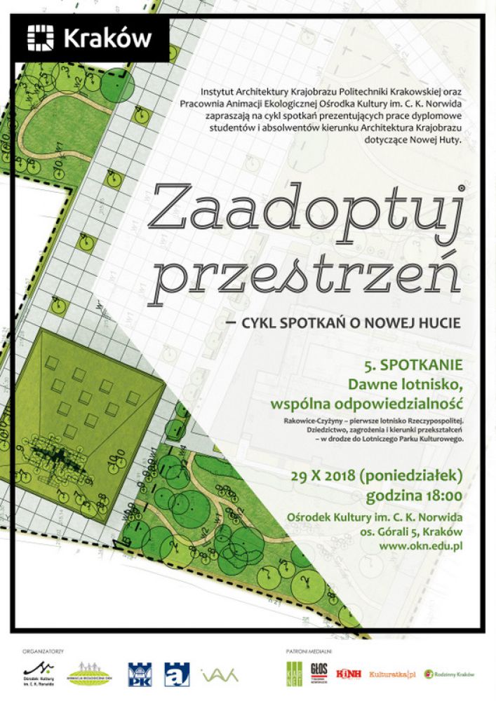 Pište spotkanie z cyklu "Zaadoptuj przestrzeń". Tym razem zaprezentowane zostanš pomysły młodych architektów krajobrazu na zagospodarowanie terenów sšsiadujšcych z pasem startowym dawnego lotniska Rakowice-Czyżyny. Wstęp wolny.