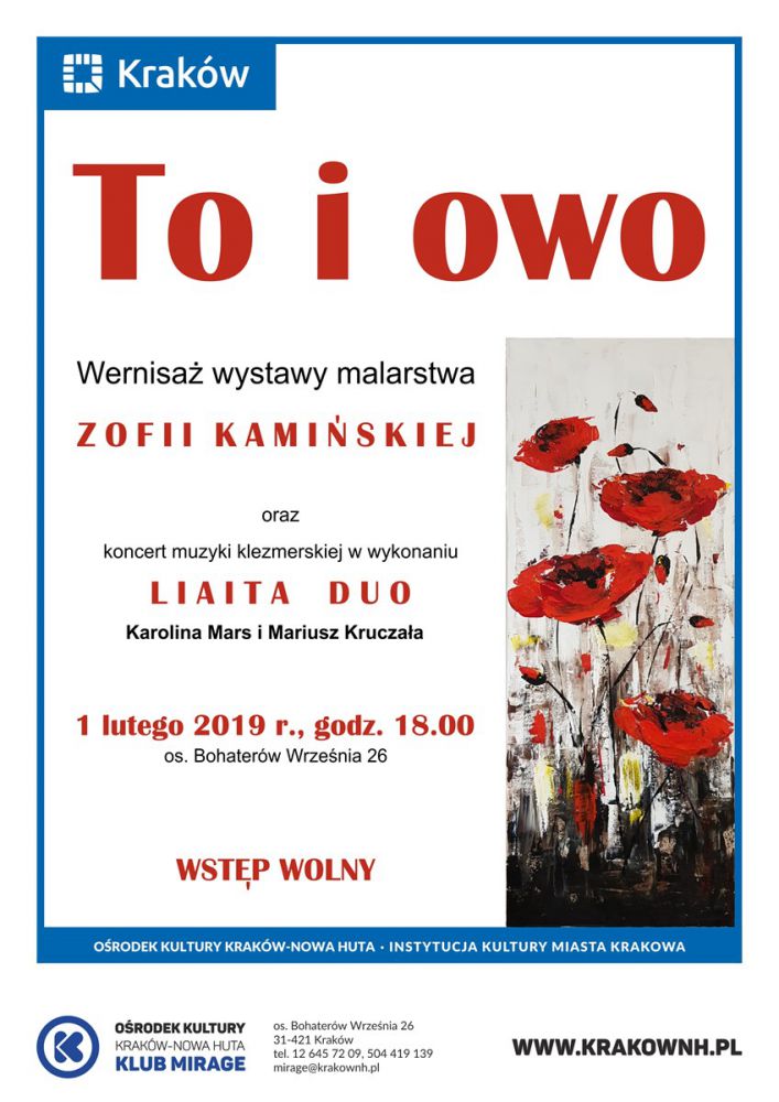 http://krakownh.pl/zapowiedz_klub/4652/to-i-owo-wernisaz-wystawy-malarstwa-zofii-kaminskiej-oraz-koncert-liaita-duo/1/14.html?utm_source=www&utm_medium=krkzapr&utm_campaign=mirage1