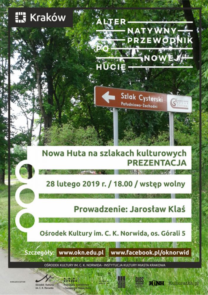 Prezentacja o szlakach kulturowych przebiegajšcych przez Nowš Hutę w ramach cyklu Alternatywny przewodnik po Nowej Hucie. Prowadzenie: Jarosław Kla. Wstęp wolny.