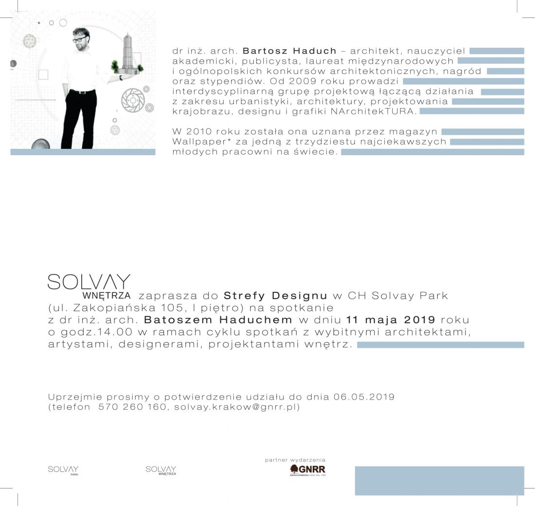 11. 05. 2019 - godz. 14.00 Solvay Park - w ramach projektu Solvay Wnętrza, partner wydarzenia GNRR Nieruchomoœci.