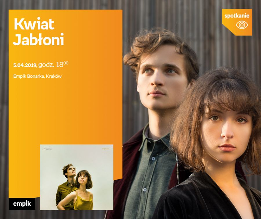 Kwiat Jabłoni to folkowo-elektroniczny duet tworzony przez rodzeństwo: Katarzynę i Jacka Sienkiewiczów. Ich pierwszy, wydany blisko rok temu utwór „Dziœ póŸno pójdę spać” z miejsca podbił serca internautów, co zaowocowało ponad 4 milionami wyœwietleń na youtube. Debiutancki album tej formacji – „Niemożliwe” (Wydawnictwo Agora) zawiera 12 wpadajšcych w ucho melodii połšczonych z dojrzałymi i refleksyjnymi tekstami. O kulisach powstania tego kršżka artyœci opowiedzš podczas spotkania.