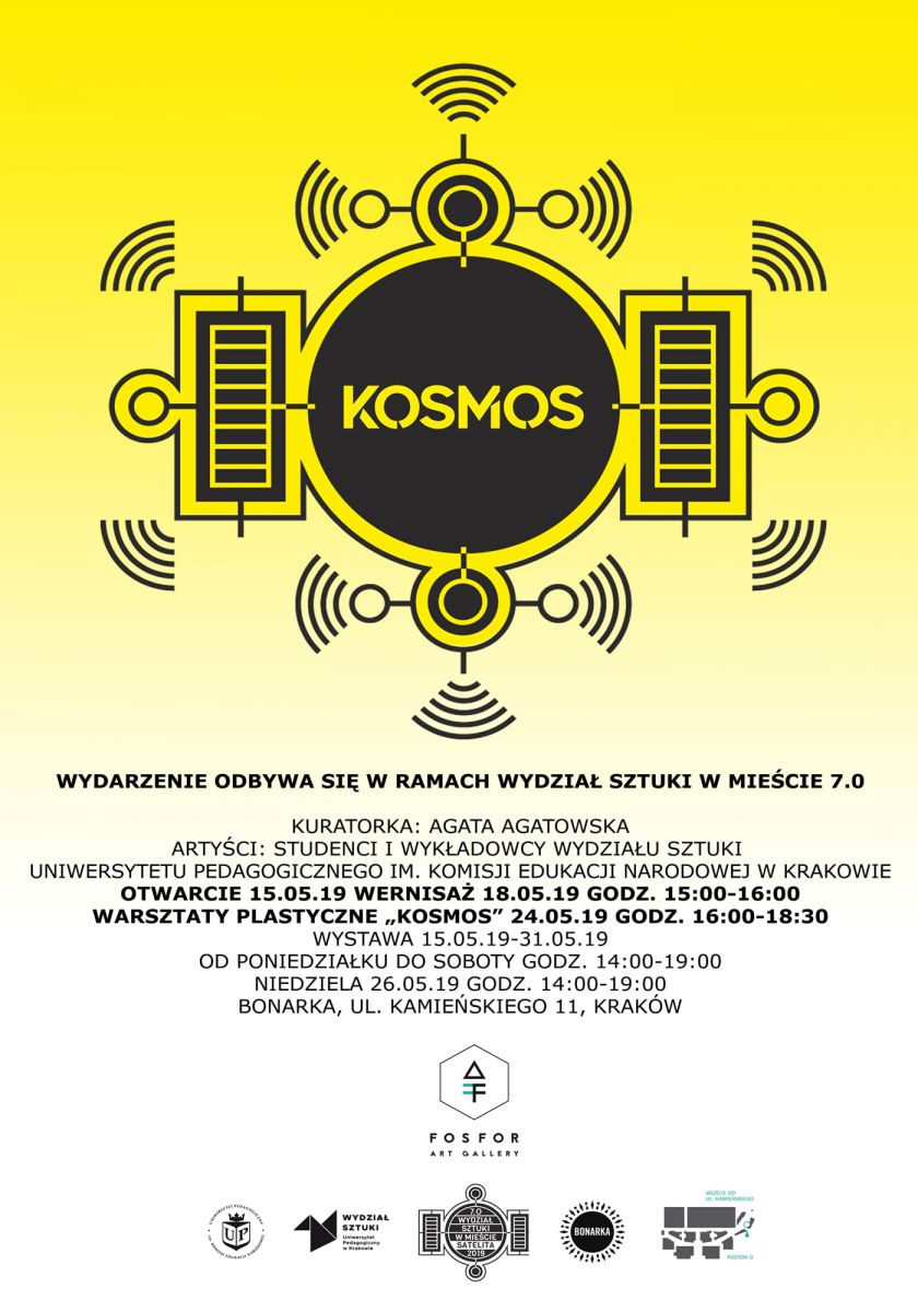 Wydział Sztuki Uniwersytetu Pedagogicznego w Krakowie, organizator akcji Wydział Sztuki w Mieœcie, oraz Bonarka zapraszajš na wystawę Kosmos od poniedziałku do soboty oraz w niedziele 26 maja, w godz. 14:00 – 19:00. Wernisaż w Galerii Fosfor odbędzie się 18 maja o godz. 15:00. W czasie trwania wystawy zostanš zorganizowane warsztaty plastyczne, na które centrum zaprasza 24 maja o godz. 16:00.