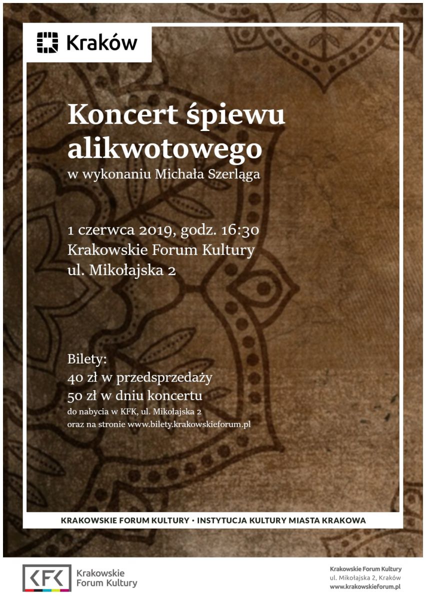 Bilety: 40 zł – przedsprzedaż, 50 zł – w dniu koncertu, dostępne na stronie bilety.krakowskieforum.pl lub w siedzibie KFK