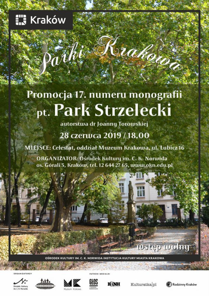 Pracownia Animacji Ekologicznej Orodka Kultury im. C. K. Norwida w Krakowie wraz z partnerami serdecznie zapraszajš na spotkanie promocyjne 17. numeru monografii z serii Parki Krakowa autorstwa dr Joanny Torowskiej, który został powięcony Parkowi Strzeleckiemu. Wstęp wolny.
