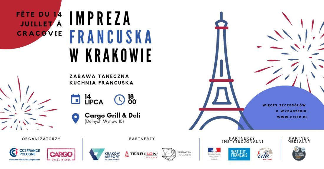 14 lipca, w dzień narodowego œwięta Francji, Francusko-Polska Izba Gospodarcza organizuje Imprezę Francuskš w Krakowie, która jest okazjš do zamanifestowania obecnoœci licznej grupy firm francuskich w Polsce i do wspólnego celebrowania francuskiego art de vivre wraz z uczestnikami: wszystkimi miłoœnikami Francji i jej kultury, przedstawicielami francuskiego i polskiego biznesu, mediów.
