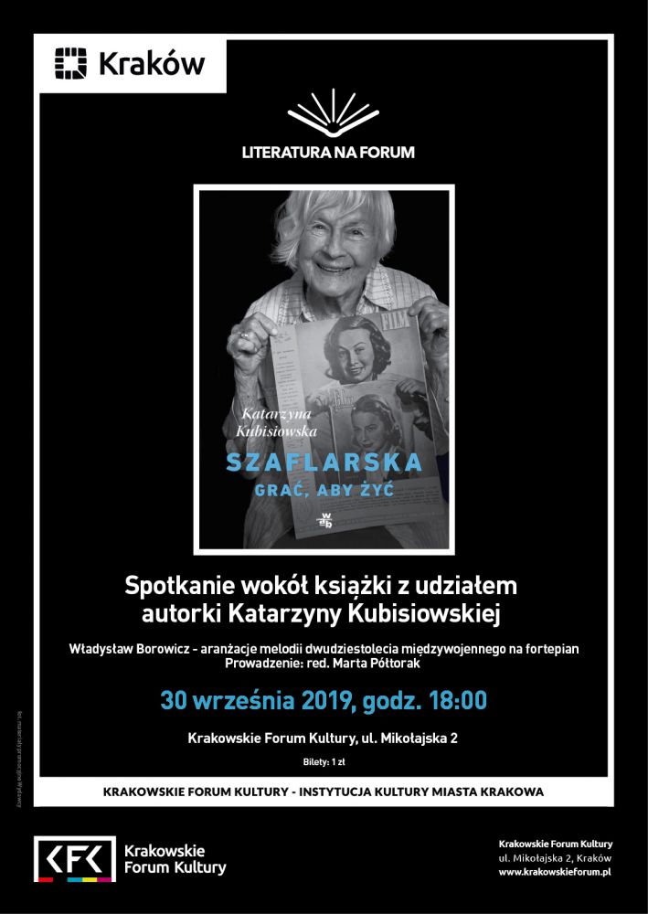 Krakowskie Forum Kultury zaprasza na spotkanie wokół ksišżki „Szaflarska. Grać, aby żyć” z udziałem autorki Katarzyny Kubisiowskiej oraz Władysława Borowicza, które odbędzie się 30.09 o godz. 18:00.