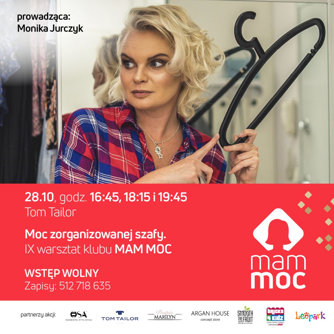 Nie mam co na siebie włożyć! każdy choć raz pomylał w ten sposób, bšd usłyszał te słowa od kogo bliskiego. Z odsieczš przychodzi OSA Osobista Stylistka, która poprowadzi kolejne z cyklu spotkań Klubu MAM MOC w Centrum Serenada. Warsztaty pt. Moc zorganizowanej szafy odbędš się 28 padziernika w salonie Tom Tailor w aż trzech grupach warsztatowych o godz. 16.45, 18.15 oraz 19.45.