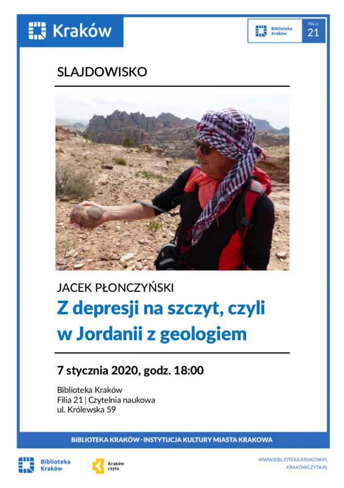 Geolog, kartograf, przewodnik tatrzański i międzynarodowy przewodnik górski, podróżnik, prezes Krakowskiego Klubu Przodowników Turystyki Górskiej PTTK. Zajmuje się animacjš kultury turystyki górskiej, popularyzuje góry i podróżowanie, prowadzšc prelekcje oraz prezentujšc fotorelacje z podróży. Regularnie organizuje Spotkania z górami w Wojskowym Oœrodku Kultury w Krakowie. Publikuje również artykuły o tematyce górskiej w czasopiœmie „Maćkowa Perć”. Podczas spotkania Jacek Płonczyński opowie o Jordanii oraz zaprezentuje zdjęcia i podzieli się wrażeniami z własnej podróży do tego kraju.