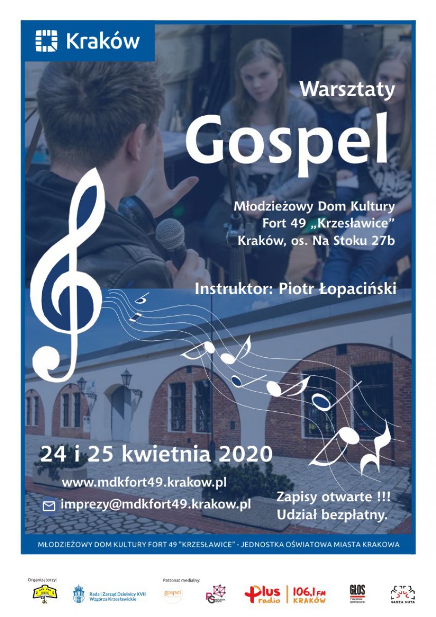Fort 49 „Krzesławice” odbędš się międzypokoleniowe warsztaty muzyki gospel. Do udziału zapraszamy każdego kto lubi œpiewać i marzy o energetycznym, niepowtarzalnym, dobrze spędzonym czasie.
