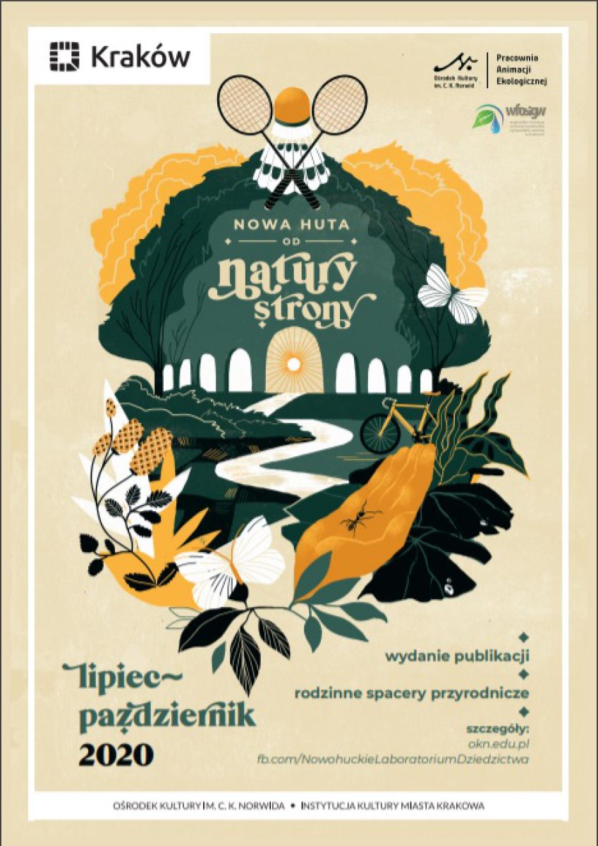 Nowa Huta od NATURY strony - projekt z zakresu edukacji ekologicznej w obszarze dziedzictwa przyrodniczego najbardziej zielonej częœci Krakowa, organizowany przez Pracownię Animacji Ekologicznej działajšcš w ramach Nowohuckiego Laboratorium Dziedzictwa Oœrodka Kultury im. C. K. Norwida. Zakłada organizację weekendowych rodzinnych spacerów poznawczo-badawczych organizowanych dla mieszkańców Nowej Huty i Krakowa. W okresie od lipca do paŸdziernika 2020 r. odbędš się 4 spacery tematyczne po Łškach Nowohuckich oraz 7 wypraw szlakami przyrodniczymi dzielnicy, podczas których prezentowane będš wszystkie formy zieleni miejskiej (użytki ekologiczne, nieużytki, zieleń parkowa i forteczna, ogródki działkowe, zieleń podwórek i osiedli - w tym pomniki przyrody i parki kieszonkowe, zieleń cišgów rzecznych, lasy miejskie). Na zakończenie projektu powstanie publikacja elektroniczna, która opisywać będzie miejsce każdej z wypraw wraz z krótkš charakterystykš innych podobnych w Nowej Hucie. Dofinansowano ze œrodków Wojewódzkiego Funduszu Ochrony Œrodowiska i Gospodarki Wodnej w Krakowie.