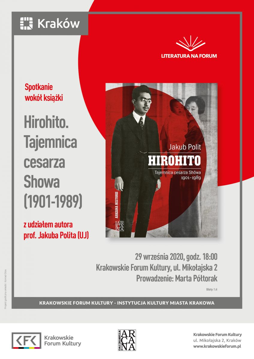 Spotkanie wokół ksišżki Hirohito. Tajemnica cesarza Showa (1901 – 1989) z udziałem autora prof. Jakuba Polita (UJ). 2 wrzeœnia 1945 roku na pokładzie pancernika „Missouri” podpisany został akt kapitulacji Japonii. W maju 1946 roku alianci rozpoczęli procesy przed Trybunałem Wojskowym w Tokio. Dowódca sił okupacyjnych USA gen. Douglas MacArthur nie chciał, by Hirohito stanšł przed sšdem. Panujšcy przez 62 lata cesarz Shōwa, za życia znany jako Hirohito, należy do najbardziej enigmatycznych i kontrowersyjnych mężów stanu XX wieku. Jego oceny oscylujš między obrazem bezwolnej marionetki w cudzych rękach, po perfidnie zacierajšcego œlady własnych zbrodni wszechwładnego dyktatora. Czy przed 1945 rokiem był władcš absolutnym w państwie oficjalnie konstytucyjnym? I czy po tej dacie naprawdę stracił wszelki wpływ na rzšdy? Analiza skšpych œwiadectw, które można uznać za rzetelne, daje obraz daleki od proponowanych schematów.