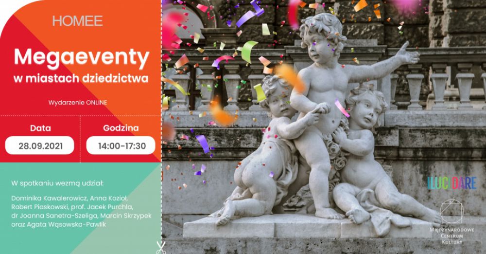 28.09 w Międzynarodowym Centrum Kultury odbędzie się spotkanie powięcone wielkim wydarzeniom przede wszystkim Europejskiej Stolicy Kultury, z uwagi na kilkuletni, wieloetapowy wycig, do którego stanš niedługo polskie miasta ubiegajšce się o ten tytuł. W dyskusji uczestnicy spotkania posłużš się Kartš megaeventów w miastach dziedzictwa, wypracowanš w ramach międzynarodowego projektu HOMEE (2018-2021), która zawiera zasady i wskazówki majšce umożliwić miastom wykorzystanie licznych możliwoci wynikajšcych z urzšdzania megaeventów, jak również minimalizację ryzyka zwišzanego z ich organizacjš.