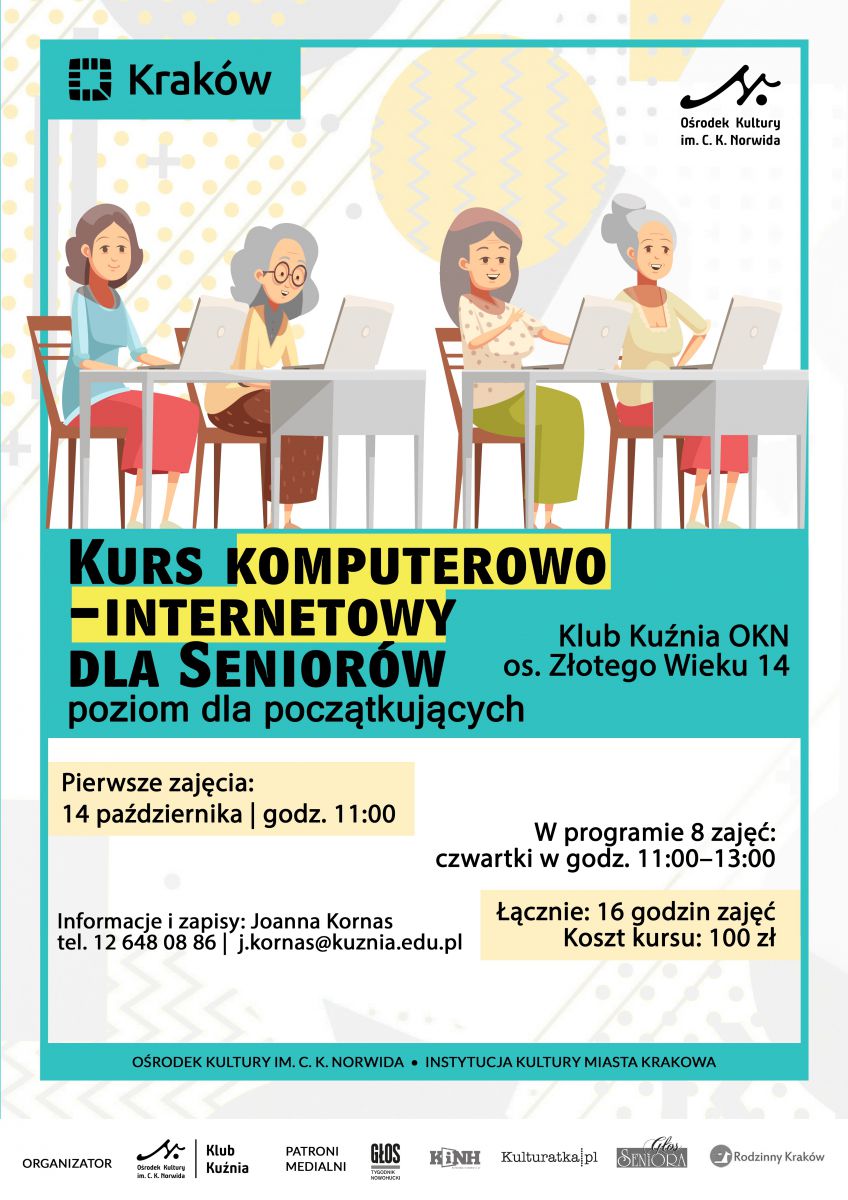 Komputerowo-internetowy kurs dla pocztkujcych seniorw. Pierwsze zajcia 14 padziernika, potem co czwartek.