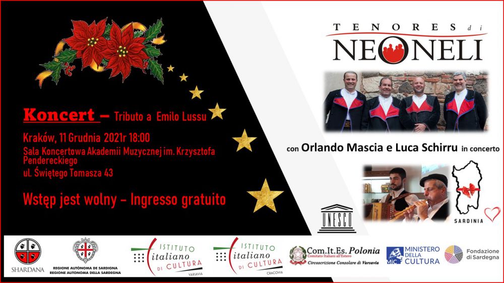 Stowarzyszenie Sardyńczyków w Polsce Shardana oraz Włoski Instytut Kultury w Krakówie majš przyjemnoœć zaprosić Państwa na pierwszy w Krakowie koncert Tenores di Neoneli.