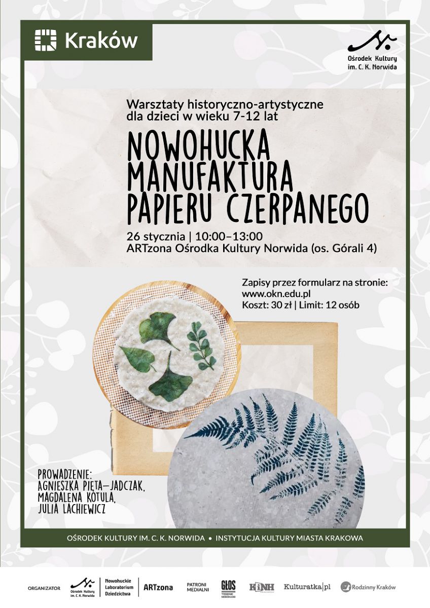 Nowohucka Manufaktura Papieru to zajęcia historyczno-artystyczne, ponieważ oprócz warsztatów dotyczšcych czerpania papieru będziemy podróżować po czasie i przestrzeni wsi przednowohuckich.