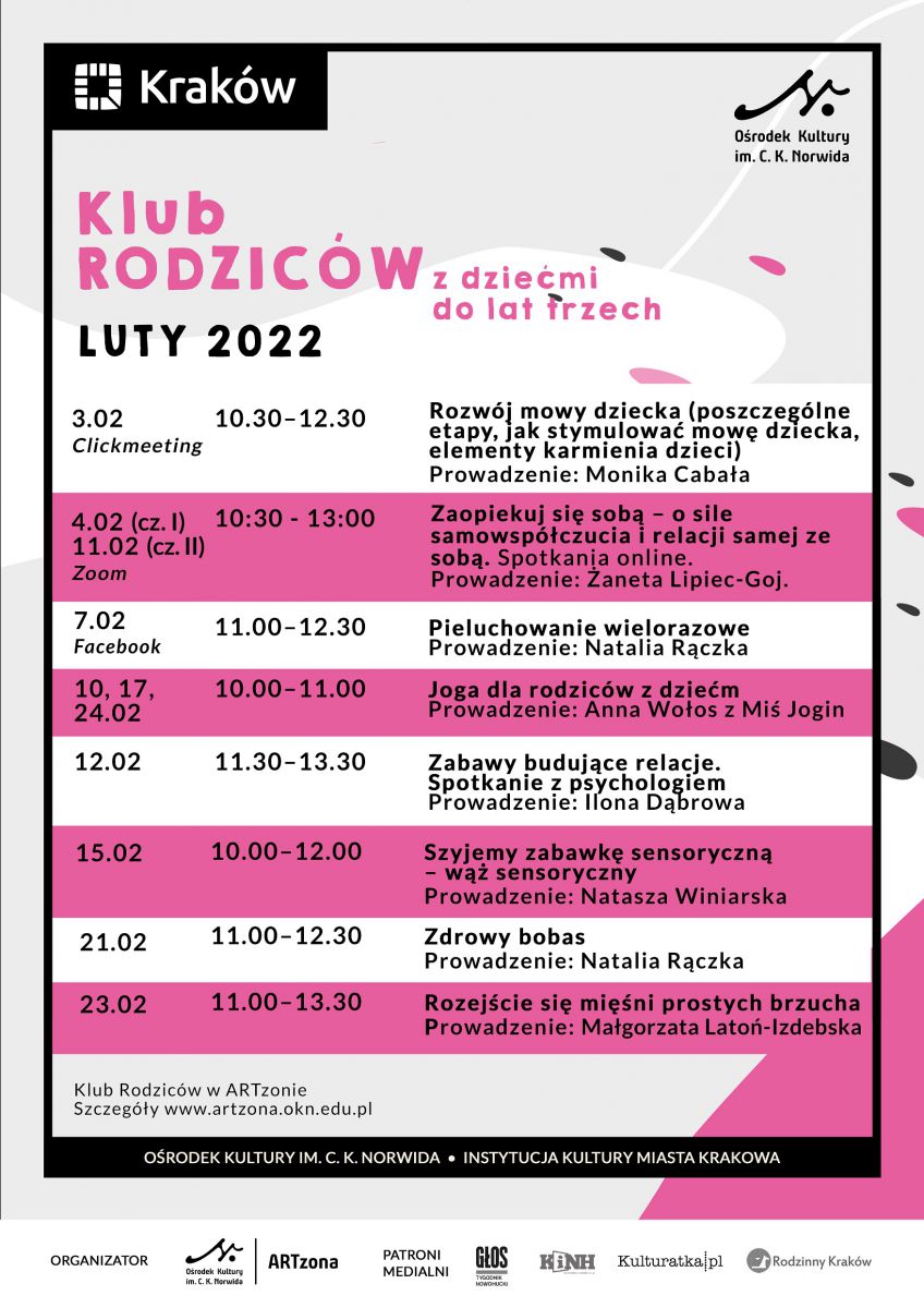Zapraszamy na spotkania w ramach Klubu Rodziców w ARTzonie. Dzięki społecznoœci rodziców skupionych wokół Oœrodka Kultury im. C. K. Norwida poznaliœmy potrzeby i oczekiwania rodziców małych dzieci wobec oferty zajęć instytucji kultury. Słuchamy Waszych pomysłów i kierujemy się potrzebami, by jeszcze bardziej włšczać rodziców i dzieci do wspólnych działań.