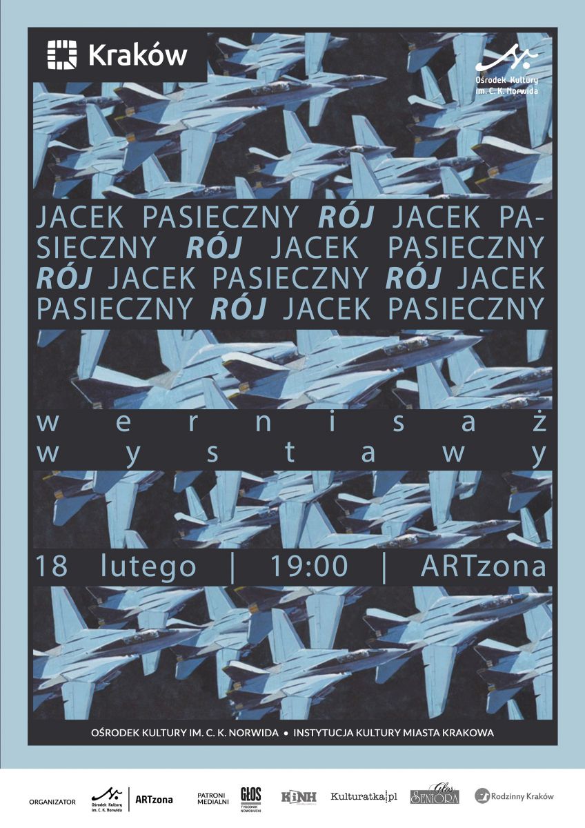 ARTzona Orodka Kultury im. C. K. Norwida (os. Górali 4) zaprasza 18 lutego o godz. 19.00 na wernisaż wystawy malarstwa Jacka Pasiecznego pt. Rój.