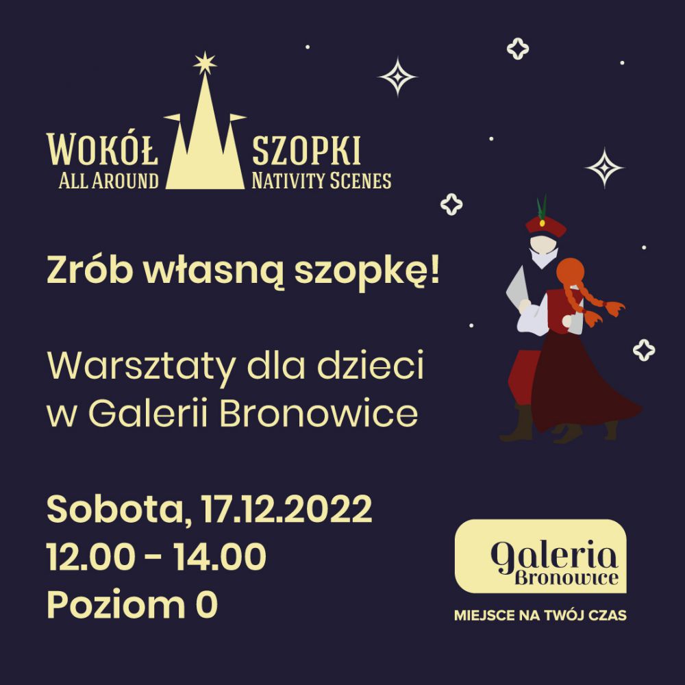Do 5 lutego 2023 roku na terenie Galerii Bronowice podziwiać można jedną spośród 40 szopek zlokalizowanych w Krakowie. Autorką wyjątkowej konstrukcji jest Marzena Dłużniewska, która pochodzi z rodziny od pokoleń kultywującej szopkarskie tradycje. Całość uzupełnią świąteczne warsztaty tematyczne, które odbędą się tu w najbliższą sobotę, 17 grudnia. Organizatorami Wokół Szopki są: Miasto Kraków, Muzeum Krakowa oraz KBF.