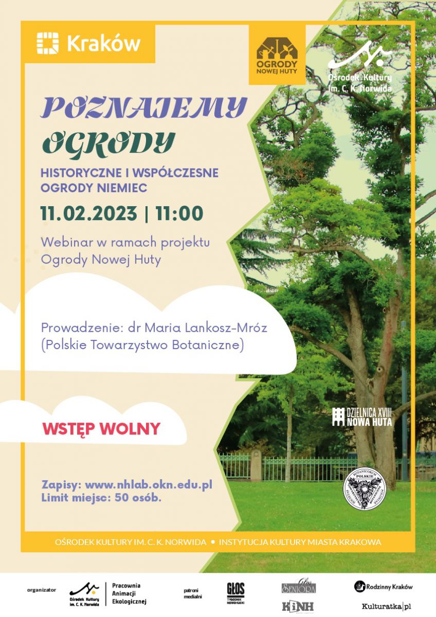 Wstęp wolny. Obowiązują zapisy przez formularz: https://okn.clickmeeting.com/historyczne-i-wspolczesne-ogrody-niemiec-/register
