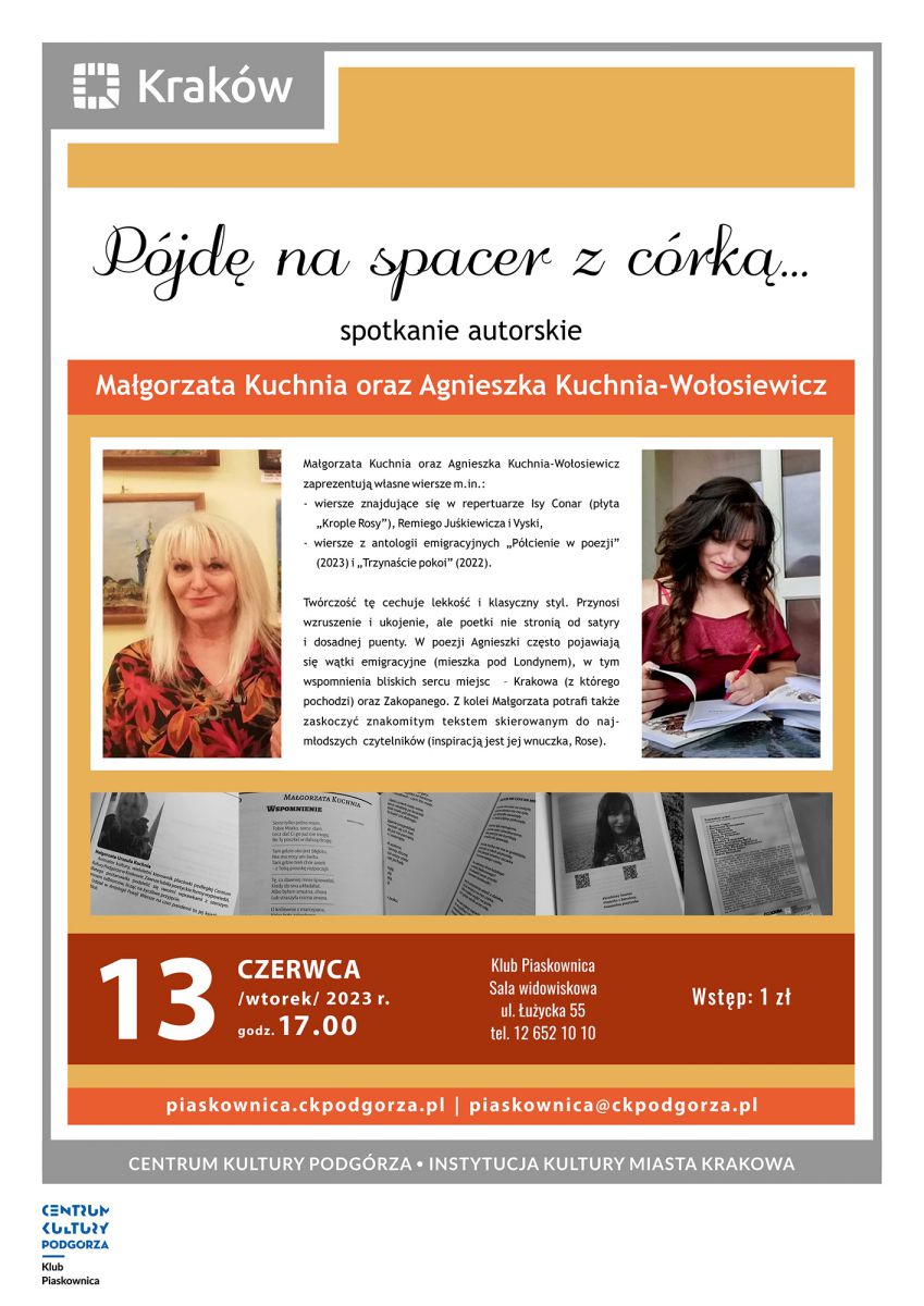 Małgorzata Kuchnia oraz Agnieszka Kuchnia-Wołosiewicz zaprezentują własne wiersze m.in.:
