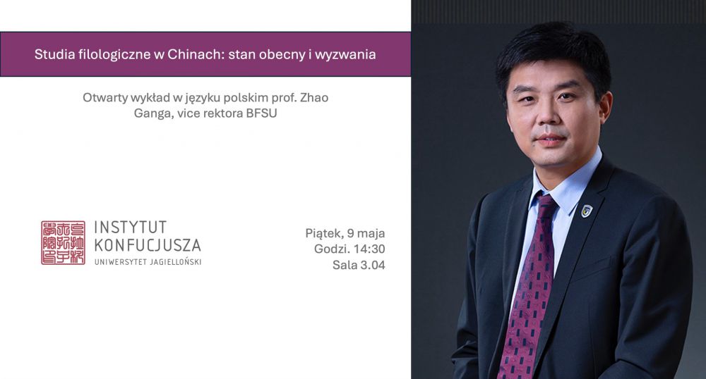 Ośrodek „Instytut Konfucjusza w Krakowie” serdecznie zaprasza w piątek 9 maja o godz. 14:30 na otwarty wykład prof. Zhao Ganga pt. „Studia filologiczne w Chinach: stan obecny i wyzwania".