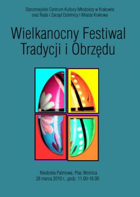 Staromiejskie Centrum Kultury Młodzieży w Krakowie zaprasza na VIII edycję Wielkanocnego Festiwalu Tradycji i Obrzędu na Placu Wolnica w Krakowie w Niedzielę Palmowš oraz dzieci i młodzież do udziału w konkursach towarzyszšcych festiwalowi: na kartkę, palmę i dekorację wielkanocnš.