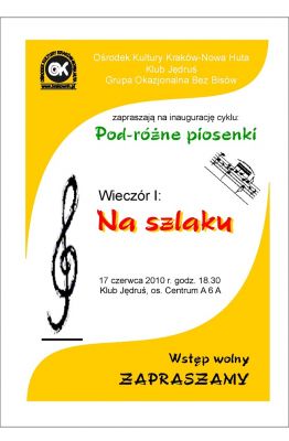 Na występ Grupy Okazjonalnej Bez Bisów zaprasza Klub Jędru. Koncert zainauguruje cyklu pod nazwš POD RÓŻNE PIOSENKI. Tematem pierwszego wieczoru będš wędrówki, podróże, jednym słowem znajdziemy się na muzycznym szlaku.