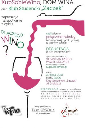 Zapraszamy na spotkanie z cyklu "Dlaczego nie wino?" czyli pynne poczenie wiedzy teoretycznej i praktycznej w jednym czasie.