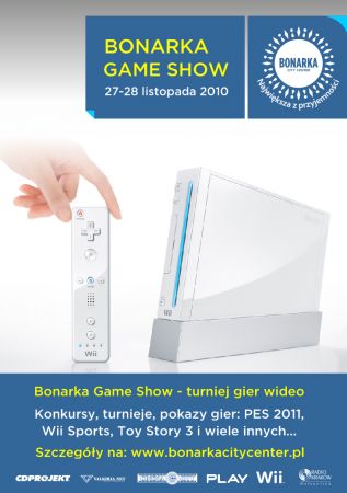 Podczas pierwszej edycji Bonarka Game Show na uczestników wirtualnych zmagań czekajš liczne konkursy, pokazy oraz turnieje. Na specjalnych stanowiskach do gry, w pasażu Północnym, przy wejœciu do Mega Avansu, będzie można wzišć udział w rozgrywkach i prezentacjach gier wideo (m.in. Pro Evolution Soccer 2011). Odrobinę ruchu i mnóstwo dobrej zabawy zapewniš także konsole Wii. Najmłodsi miłoœnicy wirtualnej rozrywki, na terenie strefy VIP Cinema City Bonarka, będš mogli wcielić się w bohaterów gier „Zaplštani” i „Toy Story 3”. Na najlepszych uczestników czekajš atrakcyjne upominki.