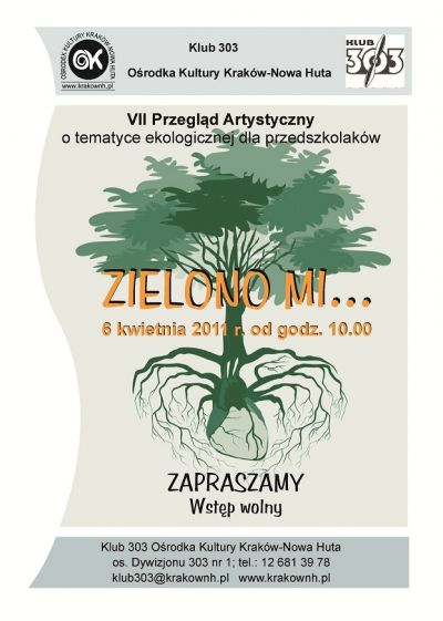 Na przeglšd prezentacji scenicznych o tematyce ekologicznej dla przedszkolaków ze zgłoszonych grup z Klubów Oœrodka Kultury i przedszkoli z rejonu Dzielnicy XIV – Czyżyny zapraszamy do Klubu 303 Oœrodka Kultury Kraków – Nowa Huta (os. Dywizjonu 303).
