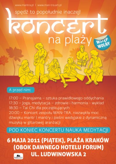 6 maja 2011 roku na Plaży Kraków, obok dawnego Hotelu Forum, ul. Ludwinowska 2 o 20.00 będzie można posłuchać zespołu Man-tra. Program zaczyna się już o 17ej, a w nim: