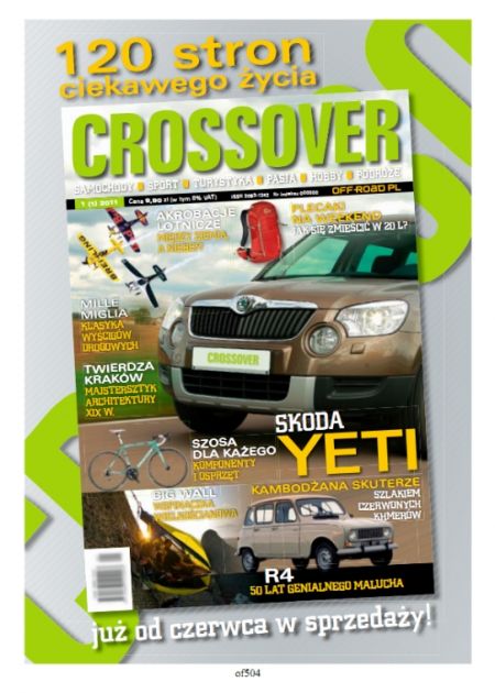 W Crossoverze będzie można przeczytać o samochodach, a w szczególnoœci o najdynamiczniejszym segmencie motoryzacji, czyli crossoverach, historii ciekawych modeli aut, pasjach i hobby, które nie majš nic wspólnego z motoryzacjš, ale też takich, które majš w niej swoje korzenie, o wycieczkach – tych bliższych i dalszych, na krańcach œwiata, o gadżetach, które podobno sš tylko dodatkiem, ale życie bez nich nie ma przecież smaku. Każdy artykuł poœwięcony konkretnej dyscyplinie sportowej zawiera rzetelne informacje o tym, gdzie można zaczšć jš uprawiać, jak doskonalić technikę oraz jaki sprzęt jest potrzebny w tym celu.