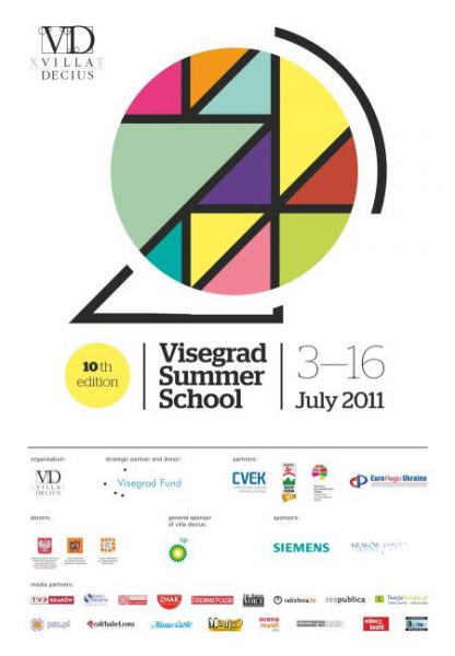 Letnia Szkoła Wyszehradzka 2011. W poprzednich edycjach uczestniczyło blisko 450 osób z krajów Grupy Wyszehradzkiej i ponad 20 innych krajów głównie Europy Wschodniej i Południowo-Wschodniej. W zwišzku z jubileuszowym charakterem tegorocznej edycji Letniej Szkoły Wyszehradzkiej do udziału w jej programie została zaproszona 40-osobowa grupa tzw. alumnów - wyłoniona sporód absolwentów poprzednich edycji, którzy wezmš udział w tygodniowym warsztacie (3 10 lipca), realizowanym w zaproponowanej formie i koncentrujšcym się na zagadnieniach wczeniej przez nich wskazanych jako najbardziej interesujšce w kontekcie problematyki wpisanej w ideę Letniej Szkoły Wyszehradzkiej. Absolwenci poprzednich edycji Szkoły uczestniczšcy w jej edycji jubileuszowej pochodzš oczywicie z wszystkich czterech krajów Grupy Wyszehradzkiej, ale także z Francji, Rosji, Rumunii i Ukrainy.