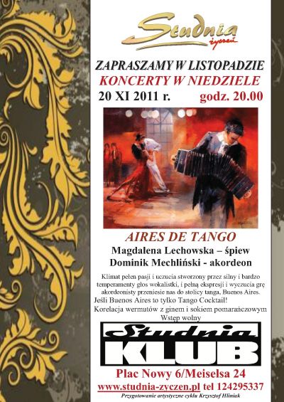 Klimat peen pasji i uczucia stworzony przez silny i bardzo temperamenty gos wokalistki, i pen ekspresji i wyczucia gr akordeonisty przeniesie nas do stolicy tanga, Buenos Aires.