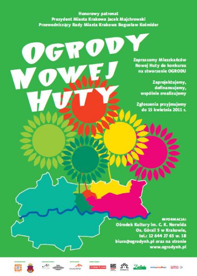 Przedsięwzięcie rozpoczęte wiosnš tego roku adresowane było do kilkuosobowych grup mieszkańców Nowej Huty, którzy chcieliby w swoim sšsiedztwie urzšdzić ogólnodostępny i bezpieczny ogród. W zamierzeniu organizatorów ogród stałby się miejscem wspólnych spotkań i pielęgnacji rolin. Sporód nadesłanych propozycji jury wybrało dwa projekty do realizacji. Ogrody zostały założone we współpracy z architektem obrazu i dowiadczonym ogrodnikiem.