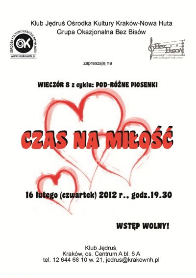 Klub Jędruœ Oœrodka Kultury Kraków-Nowa Huta (os. Centrum A 6a) zaprasza na ósmy wieczór z cyklu POD – RÓŻNE PIOSENKI.