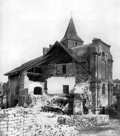 fot. Kociół w. Ducha po wyburzeniu szpitala, w tle wieża kocioła w. Krzyża, 1892. Na miejscu zabudowań duchaków wybudowano Teatr im Juliusza Słowackiego.