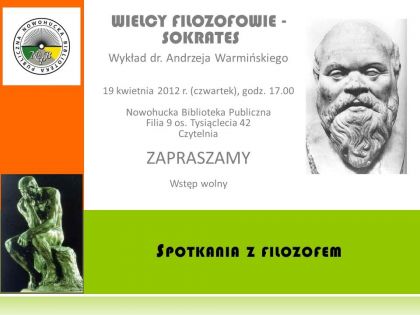 Filia nr 9 NhBP realizuje cykl spotka z dr Andrzejem Warmiskim pracownikiem naukowym Instytutu Filozofii i Socjologii Uniwersytetu Pedagogicznego im. Komisji Edukacji Narodowej w Krakowie. Specjalno dr. Andrzeja Warmiskiego to: aksjologia, estetyka, etyka, filozofia kultury, filozofia wspczesna, historia filozofii. Jako pracownik akademicki w przystpny sposb przyblia czytelnikom zagadnienia filozofii.