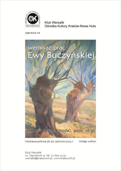 Kolejny wernisaż w Klubie Wersalik Oœrodka Kultury Kraków-Nowa Huta poœwięcony będzie malarstwu sztalugowemu Ewy Buczyńskiej, która swojš przygodę ze sztukš rozpoczęła od tkactwa artystycznego, następnie przyszedł czas na pędzle i farby.