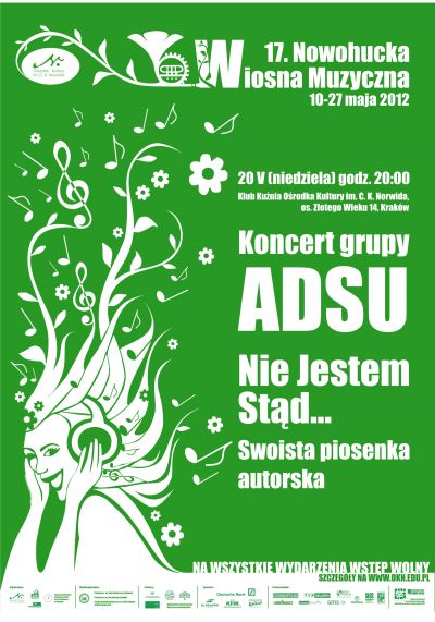 W ramach Nowohuckiej Wiosny Muzycznej zapraszamy do Klubu Kunia na koncert grupy ADSU. Koncert będzie taki, jaki jest zespół - spokojny, klimatyczny, ciepły.