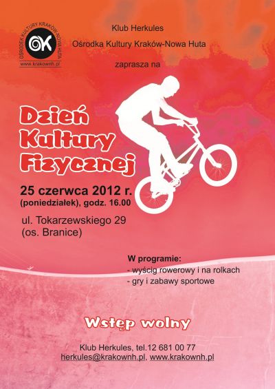 Klub Herkules Oœrodka Kultury Kraków-Nowa Huta (ul. Gen. M. Karaszewicza-Tokarzewskiego 29) zaprasza dzieci i młodzież na imprezę, podczas której będš mogli sprawdzić swojš sprawnoœć fizycznš poprzez udział w różnych konkursach i grach sportowych.