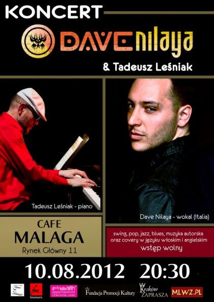 Cafe Malaga Rynek Główny 11 zaprasza na koncert włosko-polskiej formacji DAVE NILAYA DUET, w skladzie: