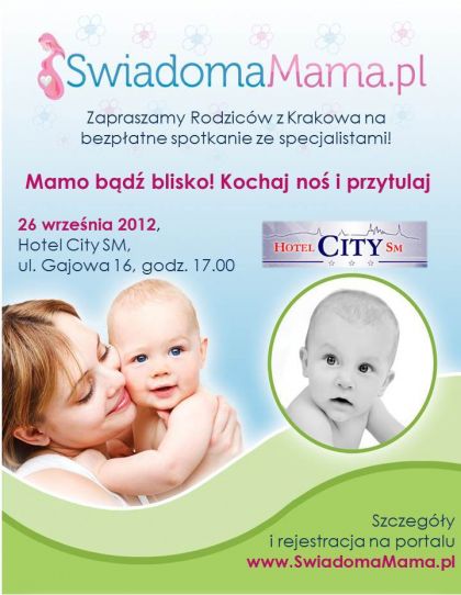 Już 26 wrzeœnia w Hotelu City SM odbędzie się spotkanie dla rodziców z Krakowa z udziałem psychologa i doradcy laktacyjnego. Odbędzie się także pokaz wišzania chust połšczony z krótkim warsztatem.