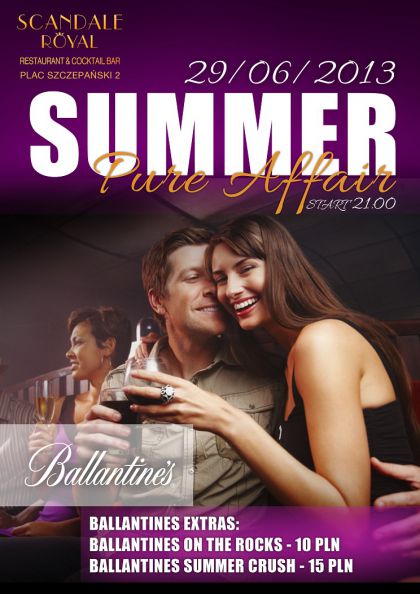 A wszystko to ju w najblisz sobot, 29 czerwca na Placu Szczepaskim 2 w Scandale Royal. Moecie wic liczy na najlepsze towarzystwo i atmosfer, muzyk na wiatowym poziomie i tradycyjnie na naszych barmanw serwujcych wymienite drinki i koktajle!
