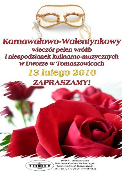 Karnawałowo - walentynkowy wieczór pełen niespodzianek kulinarno-muzycznych w Dworze w Tomaszowicach