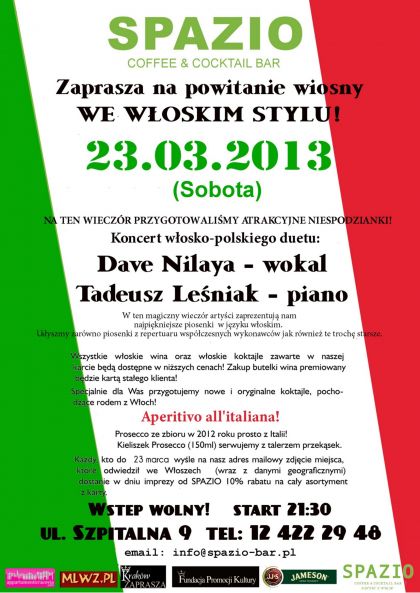 Oprawę muzyczną wieczoru zapewni nam włosko-polski duet: